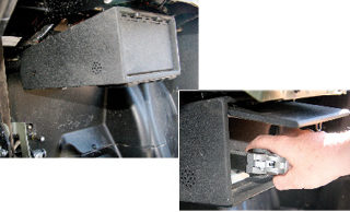 The UTV Vault. It is a very solid steel vault, the perfect size for a hand gun, wallets, keys etc. On the Polaris RZR, it mounts under the dash in the center, well clear of your legs and practically hidden from view, but in easy reach of driver and passenger. Rhino, Ranger, Teryx and Arctic Cat mounting to follow.